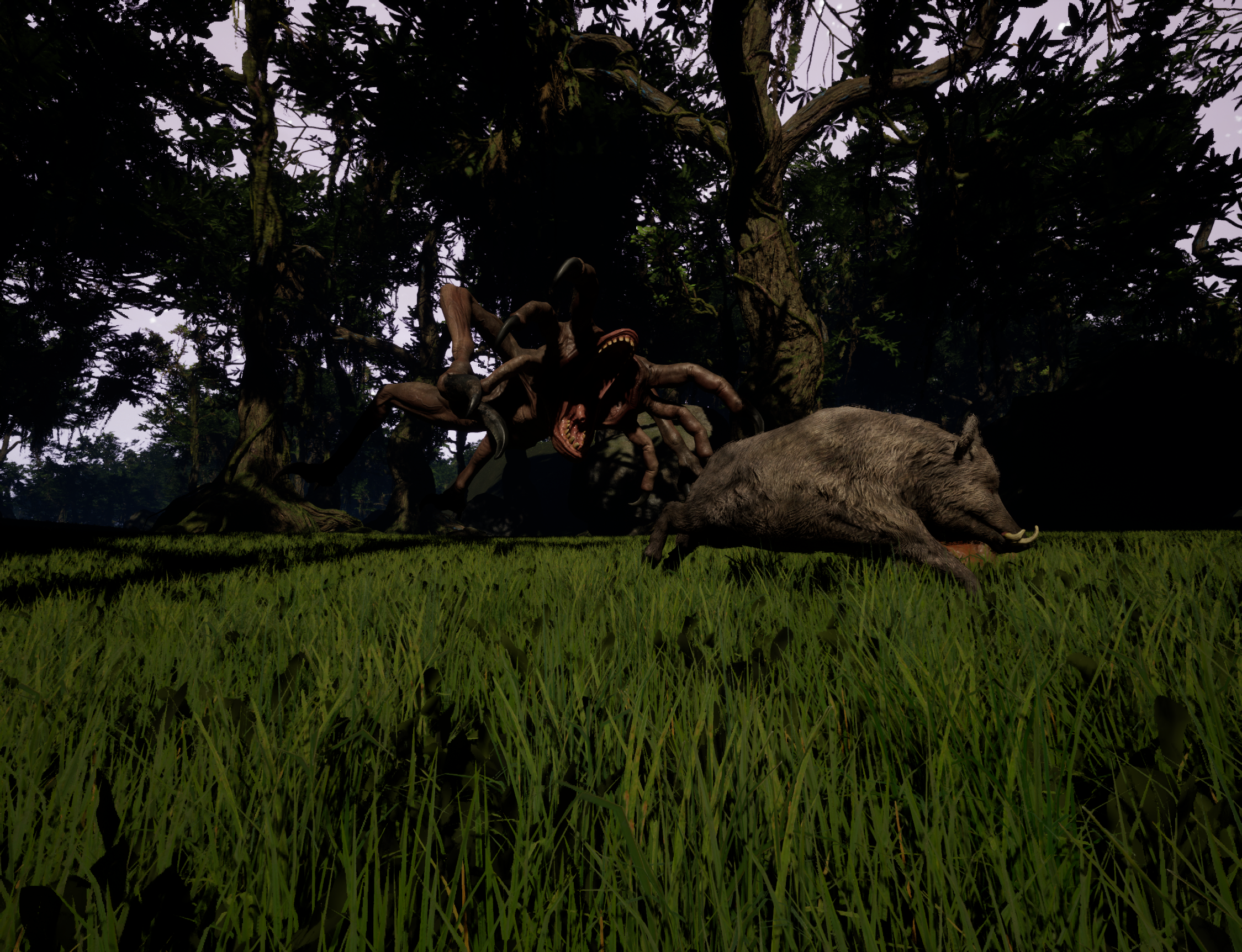 La faune du jeu interagit avec l'environnement et les autres créatures selon des comportements réalistes : prédateurs, proies, charognards, et créatures passives-agressives, tout influence la dynamique du jeu.