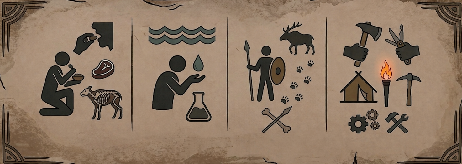 Mangez, buvez et chassez pour survivre. Trouvez des sources d'eau, traquez des animaux pour leur viande et construisez des outils de survie pour rester en vie dans un environnement hostile.